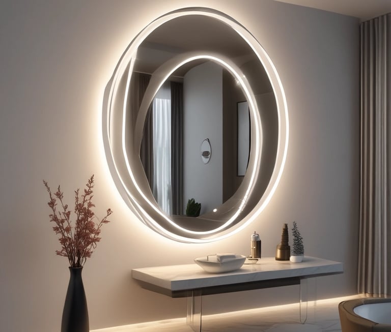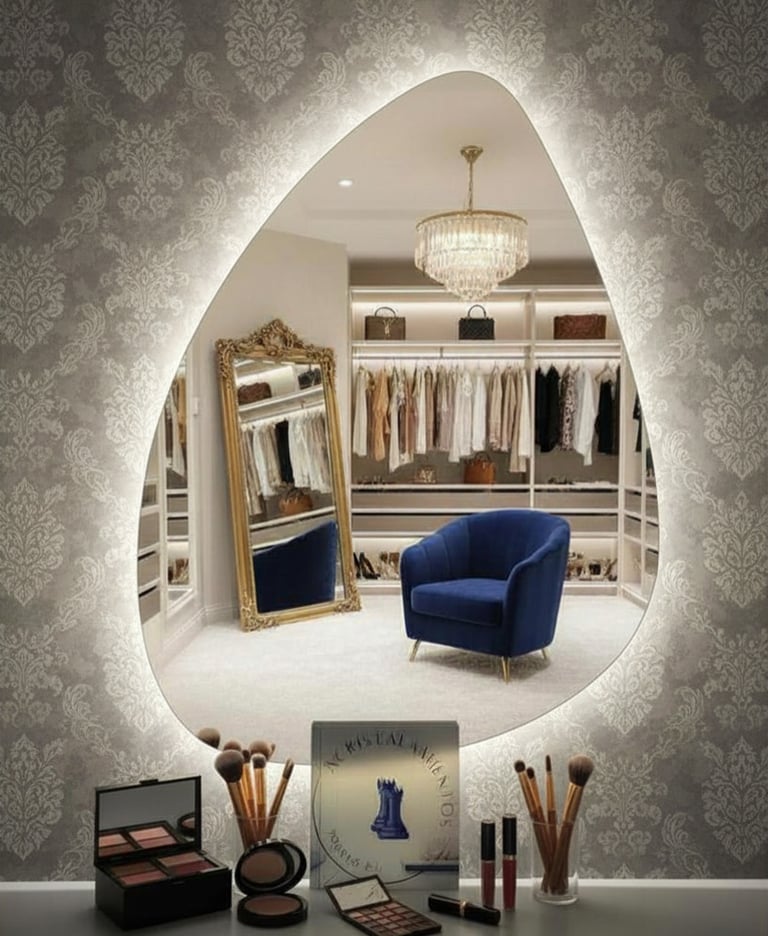 Fabricamos espejos LED personalizados para baño, vestidor y recibidor. Diseño propio, medidas exactas y entrega en Madrid y toda España.